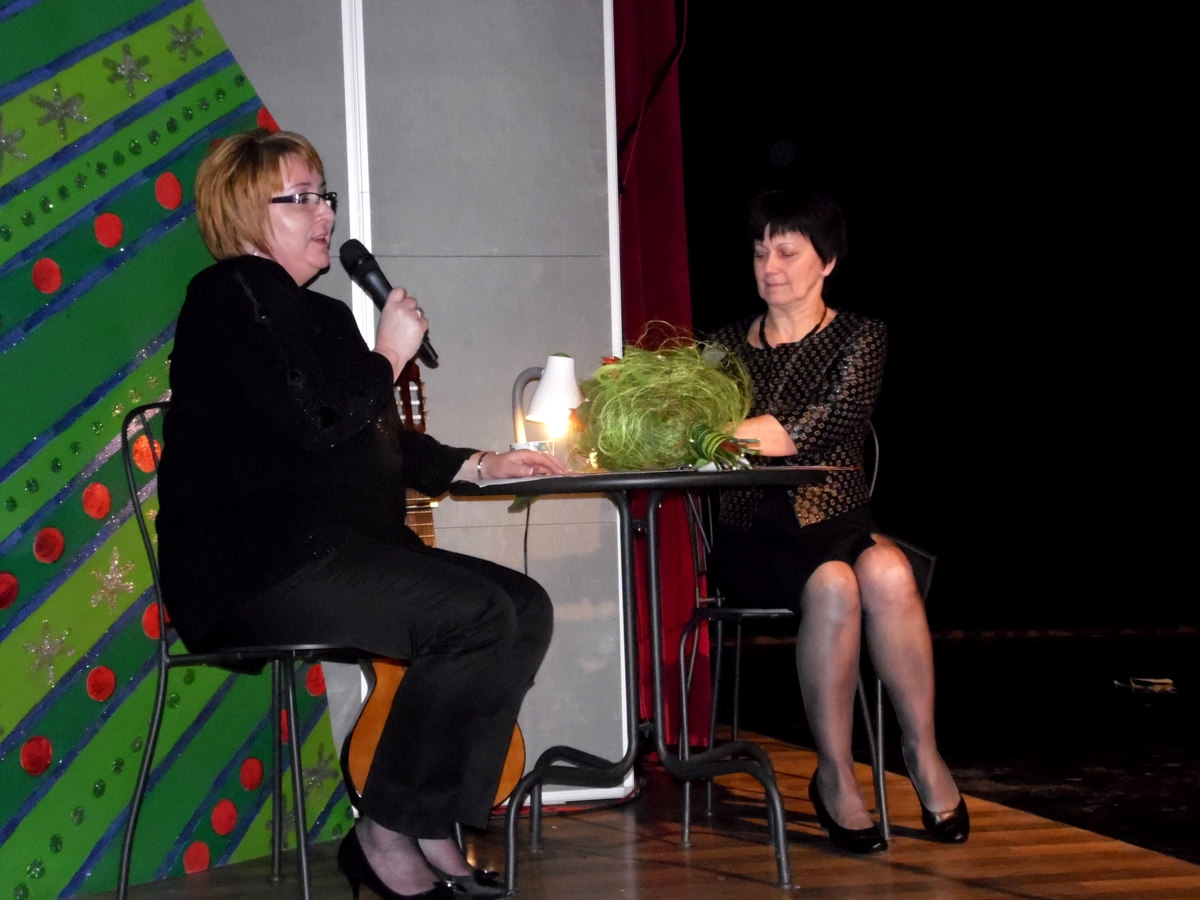Pani dyrektor, przekazała słowa uznania i wręczyła pamiątkowe podziękowania Staroście Lidzbarskiemu panu Janowi Harhajowi ,na ręce wicestarosty pana Jarosława Koguta, panu Stanisławowi Prewysz – Kwinto – wydawnictwo „Wrzos”, pani Annie Żelichowskiej – Księgarnia „Papirus”. Powyższe osoby służą zawsze pomocą w realizacji działań naszej placówki w zakresie rozwijania i wzmacniania tożsamości regionalnej wśród mieszkańców naszego powiatu. Dodatkową formą podziękowania była piosenka w wykonaniu Marty Dadury z pracowni wokalnej pani Małgorzaty Habudy, pt. „Wiosna”. Piosenka została skomponowana przez Edwarda Chrostka – nauczyciela muzyki w MDK do wiersza pani Ireny Kwinto.