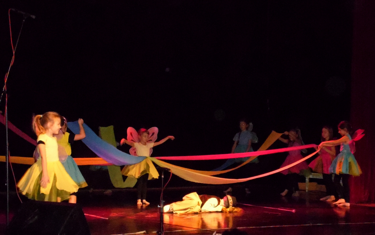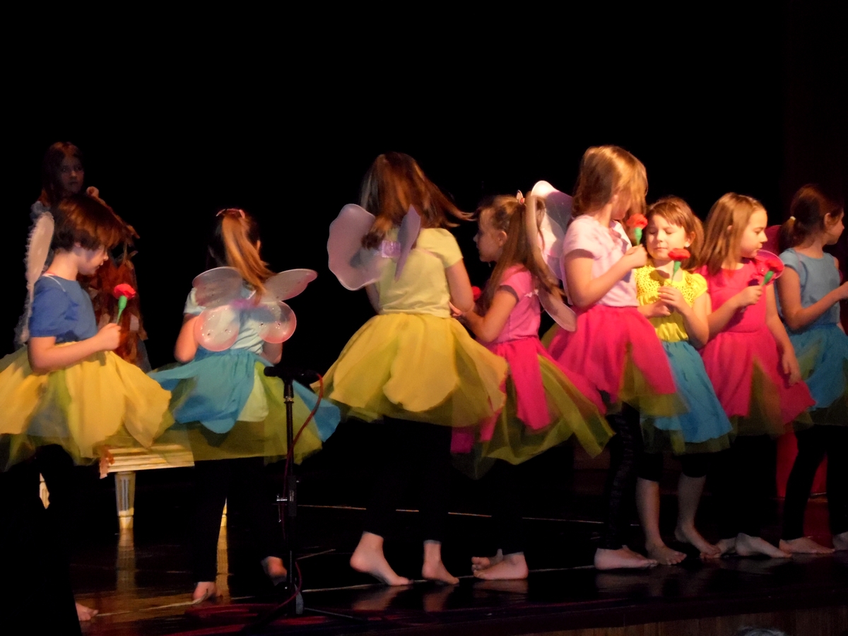 Uroczystości rozpoczęto prezentacją etiudy w wykonaniu uczestników pracowni teatralnej MDK prowadzonej przez panią Annę Wiatrak. Treścią jej była wszechobecna walka dobra ze złem. I tak jak w bajkach pani Ireny dobro odniosło zwycięstwo nad złymi siłami. Całość występu odbywała się w półmroku co dodawało szczególnego nastroju i wzmacniało siłę przekazu.